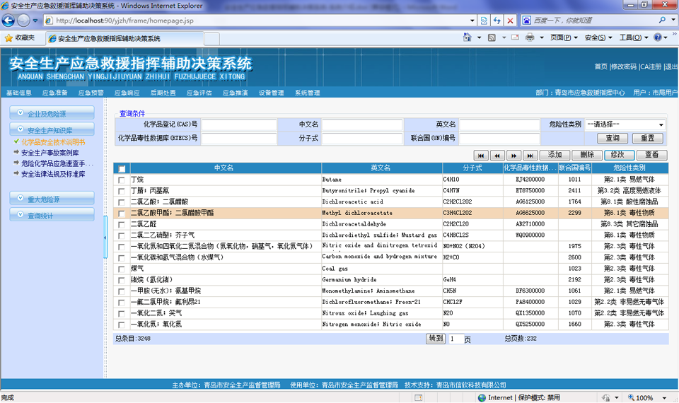 按照【GB 16483-2000 化學品安全技術說明書編寫規(guī)定】進行危險化學品信息采編,并導入常見化學品3000多條數(shù)據(jù)。
