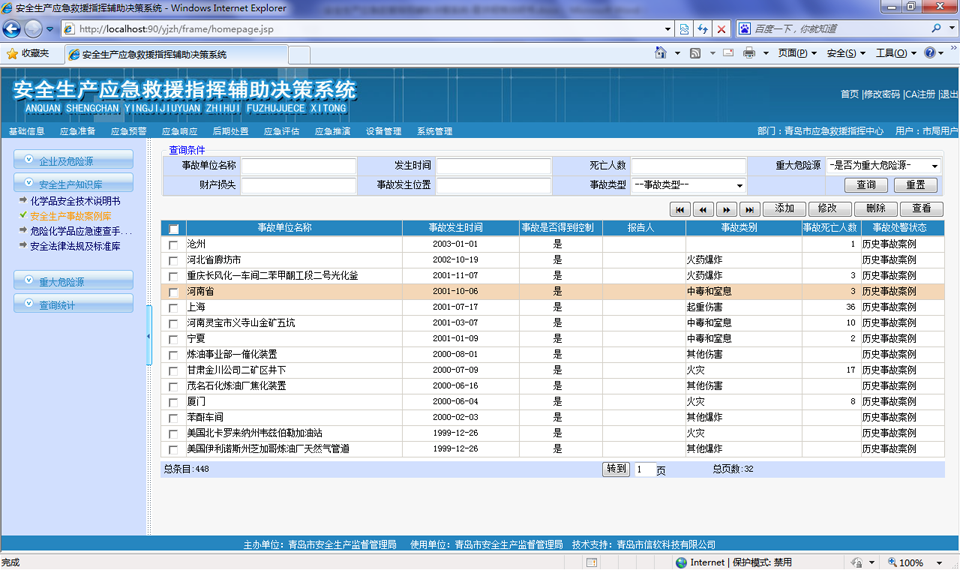 主要管理危險化學品安全技術說明書、安全生產(chǎn)事故案例、危險化學品應急速查手冊、安全法律法規(guī)及標準庫,安全法規(guī)庫管理安全應急相關的法律法規(guī)。