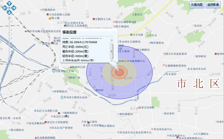 ●基于GIS實現(xiàn)了火災、爆炸、泄露模型的動態(tài)模擬和救援路徑、最近醫(yī)院路徑、最近消防路徑的指示,使應急救援工作落在了實處。