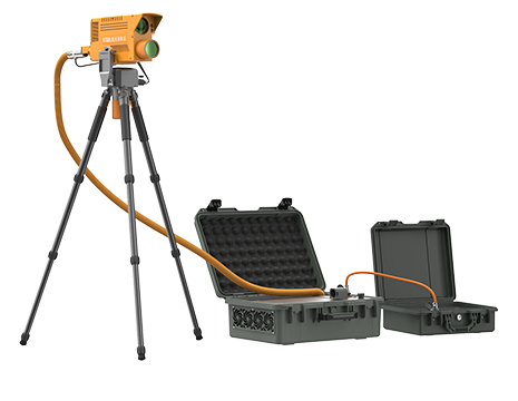 光學(xué)破拆裝置內(nèi)置高能光纖激光器,能夠從地面發(fā)射激光對(duì)鋼板、鋁板、鋼筋、彩鋼瓦、樹(shù)木、塑料、馬蜂窩等進(jìn)行遠(yuǎn)距離切割清除。