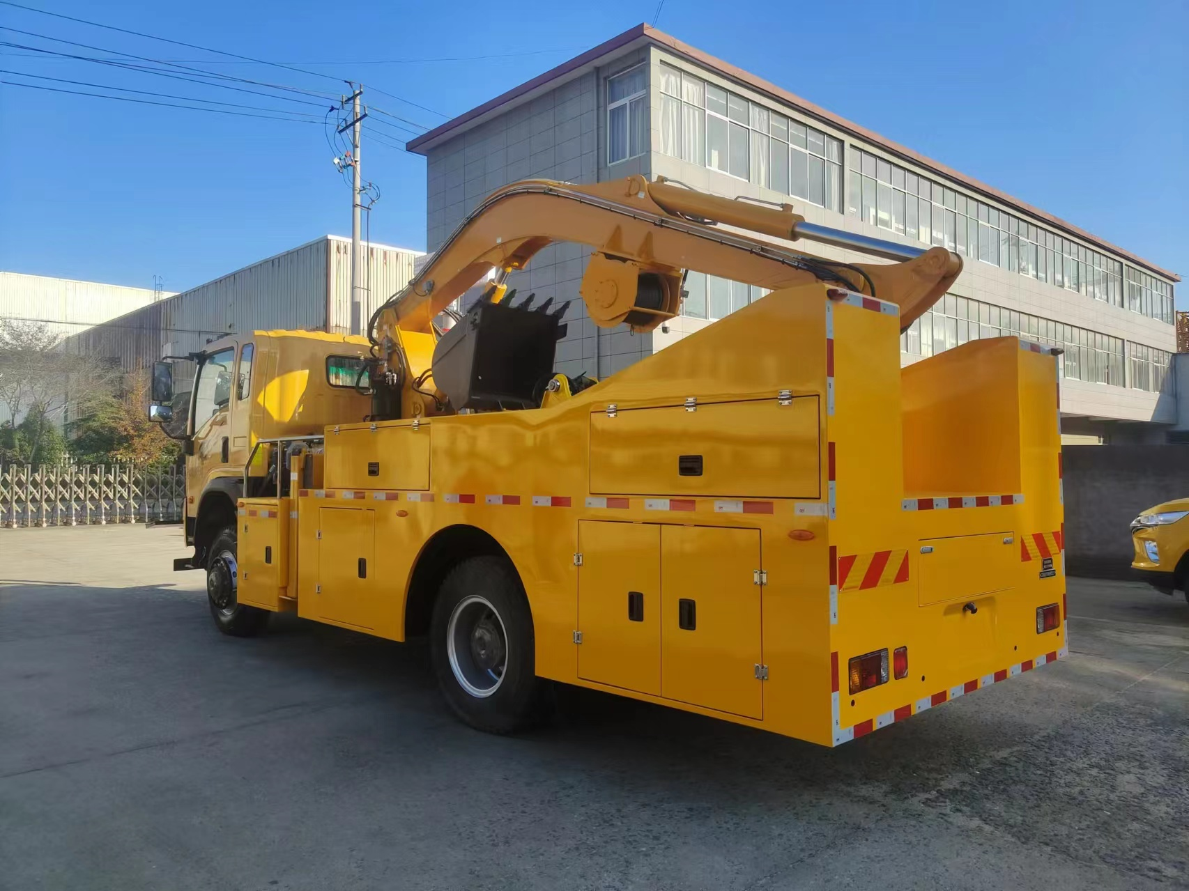 車輛配備舉升臂架、挖斗、破拆錘、抓斗、推鏟、牽引絞盤、發(fā)電機(jī)組、升降照明燈等搶險(xiǎn)裝備,實(shí)現(xiàn)多種場(chǎng)景的救援作業(yè);