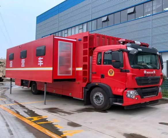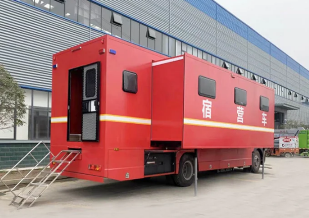 3、整車自行式設計,機動性能好,適合公路運輸,可提供野外宿營、洗漱、休閑等功能,保障能力強;整車配有空氣調節系統,生活舒適度好,可雙側擴展,空間利用率大。