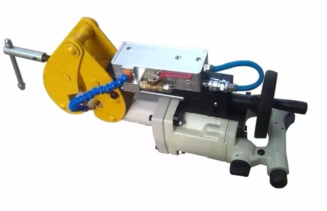 產(chǎn)品介紹: ZQG-8/0.4 氣動(dòng)鋼軌鉆適用于15kg/m-30Kg/m各種鋼軌軌型鉆孔作業(yè)。整體結(jié)構(gòu)緊湊,質(zhì)量輕、操作靈活、夾具裝置有自鎖功能,定位準(zhǔn)確、鉆孔精度高。采用空心鉆頭、也可裝卡麻花鉆頭,鉆孔有自動(dòng)給水功能,造型美觀、礦山輕軌鉆孔理想設(shè)備。 鋼軌鉆由主機(jī)、雙重?cái)嗨Wo(hù)裝置、進(jìn)口硬質(zhì)合金鋼軌鉆頭、凈化器、張緊裝置等組成,液壓膠管總成將氣源和主機(jī)連接起來(lái),經(jīng)過(guò)凈化的氣源提供的氣壓驅(qū)動(dòng)鋼軌鉆投高速鉆進(jìn),進(jìn)行切割。灑水冷卻噴頭和雙重?cái)嗨Wo(hù)裝置起到冷卻和降塵的作用,保護(hù)機(jī)器正常運(yùn)轉(zhuǎn)。