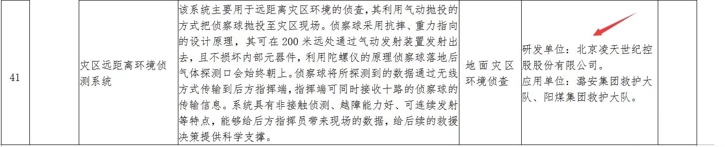 北京凌天:災區遠距離環境偵測系統入選國家煤監局煤礦安全生產先進適用技術裝備推廣目錄(第三批)