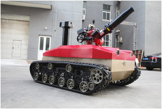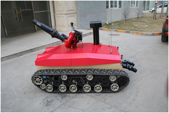 防爆消防滅火偵察機器人采用耐高溫履帶避震式底盤設計,能夠適應救援環境中各種復雜地面。裝配環境檢測裝置,在滅火的同時對現場環境數據進行偵測。機器人由機器人主體,消防炮,環境檢測裝置,遙控箱四部分組成。主要作用是代替消防隊員進入易燃易爆、有毒、缺氧、濃煙等危險災害事故現場實施有效的滅火救援、化學檢測和火場偵察。