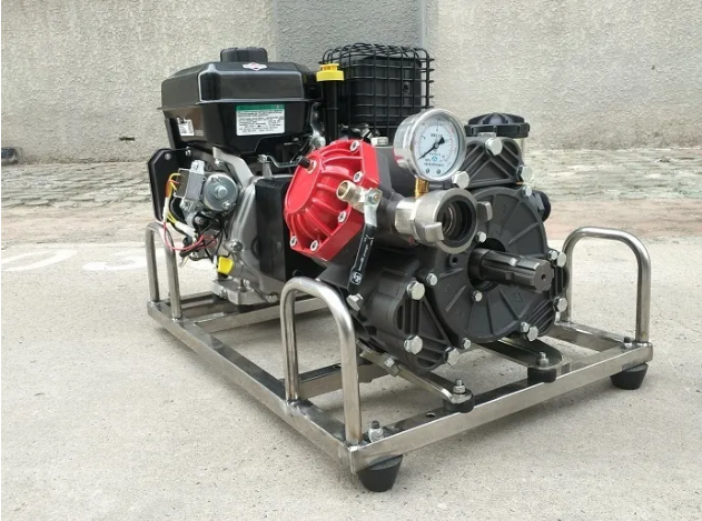 不銹鋼架,便于攜行。泵軸水平布置,減少震動(dòng)。水泵泵體為柱塞液壓隔膜泵。允許砂石顆粒通過(guò),對(duì)水質(zhì)要求低,對(duì)發(fā)動(dòng)機(jī)功率損耗小。泵組可在橫向、縱向傾斜達(dá)到25°時(shí)正常工作。水帶直徑25mm,爆破壓力18MPa,表層滌綸長(zhǎng)絲,內(nèi)襯進(jìn)口橡膠,高壓森林接口連接。水泵配備的動(dòng)力裝置為強(qiáng)制風(fēng)冷四沖程汽油機(jī)。我們的行星減速機(jī)通過(guò)特殊的處理方式,在發(fā)動(dòng)機(jī)轉(zhuǎn)數(shù)超過(guò)2000轉(zhuǎn)的情況下,不會(huì)削弱發(fā)動(dòng)機(jī)的動(dòng)力,反而有助于發(fā)動(dòng)機(jī)的動(dòng)力,提高水泵的效率。