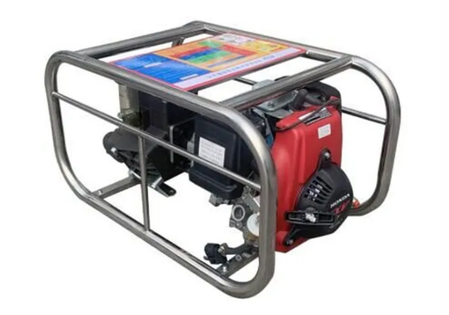 不銹鋼架,便于攜行。泵軸水平布置,減少震動(dòng) 水泵泵體為柱塞液壓隔膜泵。允許砂石顆粒通過(guò),對(duì)水質(zhì)要求低,對(duì)發(fā)動(dòng)機(jī)功率損耗小。 泵組可在橫向、縱向傾斜達(dá)到25°時(shí)正常工作。 水帶直徑40mm,爆破壓力18MPa,表層滌綸長(zhǎng)絲,內(nèi)襯進(jìn)口橡膠,高壓森林接口連接。 水泵配備的動(dòng)力裝置為強(qiáng)制風(fēng)冷四沖程汽油機(jī)。
