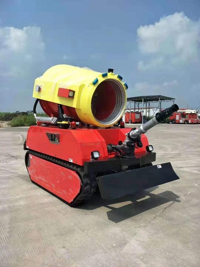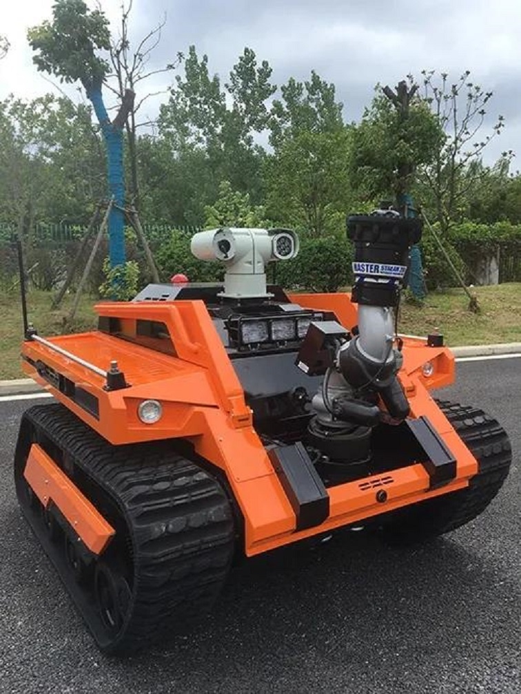 消防機器人滅火系統可有效的替代拖車炮、移動炮,利用自身動力將消防炮遙控至需要的位置;有效的替代消防戰士靠近火源及危險場所進行偵察、滅火等作業,操作人員最大可在距離火源1000米以外進行滅火作戰,避免不必要的傷亡。適用場合包括并不限于公(鐵)路隧道火災,地鐵車站與隧道火災,地下設施與貨場火災,大跨度大空間火災, 石化油庫與煉制廠火災,大面積毒氣與煙霧事故,危險火災目標的偵查、進攻與掩護,人員不易接近的火災撲救,危險場合的搶險救援。