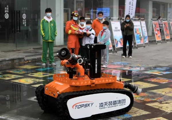 在室外展示區,消防指戰員現場展示模擬煙霧逃生帳篷、消防隱患大排查、心肺復蘇、高精尖消防裝備器材、模擬滅火裝置、消防宣傳車、“一警六員”科目及消防機器人撲救電動自行車火災演示等項目。