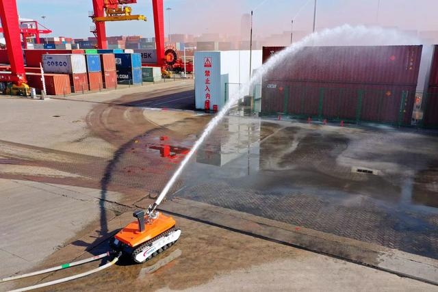 記者在現(xiàn)場(chǎng)看到,長(zhǎng)2.2米、寬1.45米,外形酷似“小坦克”的滅火機(jī)器人,在工作人員的無線遙控操作下,前面“瞪”著雙眼、后面拖著水管,迅速靠近火勢(shì)最猛烈的地方,精準(zhǔn)有力地將水噴向燃爆中心,不僅防爆防水,而且水泡射程超過90米!