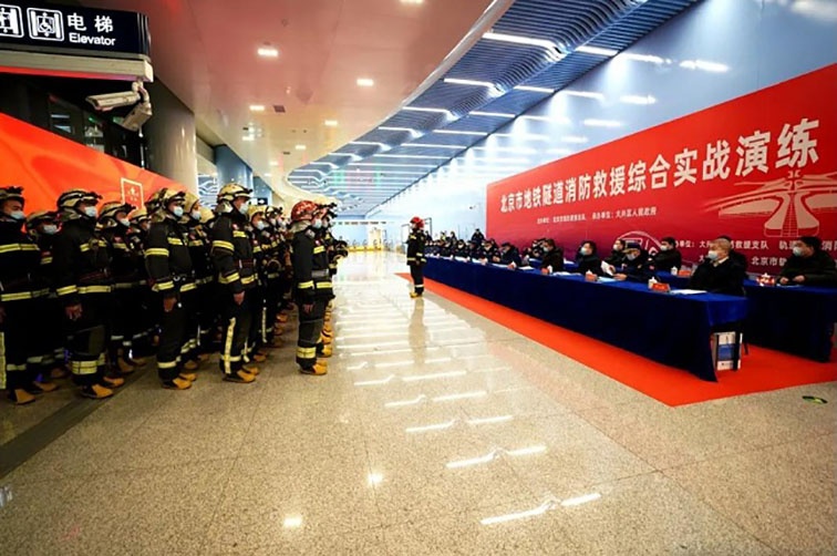 北京凌天智能消防內攻偵察機器人助力北京市地鐵隧道消防救援綜合實戰演練