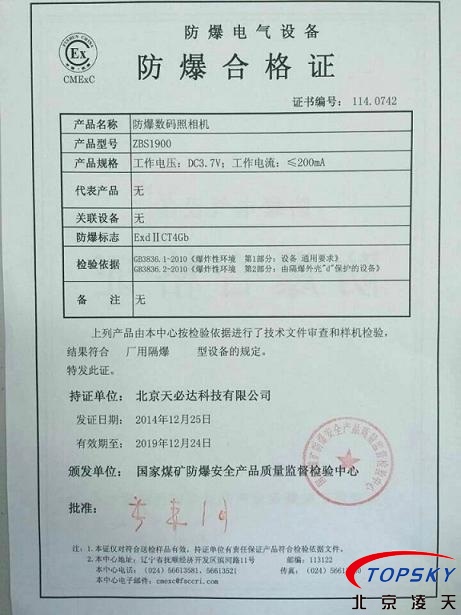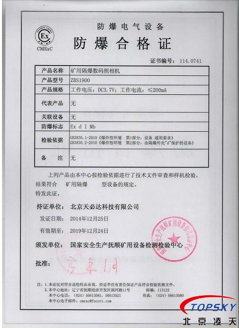 ▲12、提供煤安標(biāo)志證書、礦山防爆證書(Exd I Mb),化工防爆證書(Exd IICT4 Gb )證書原件。