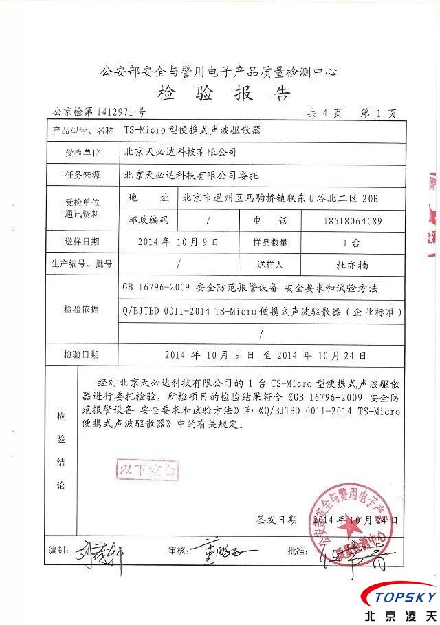 TS-Micro便攜式噪聲驅(qū)散器通過公安部權(quán)威機(jī)構(gòu)檢驗(yàn)