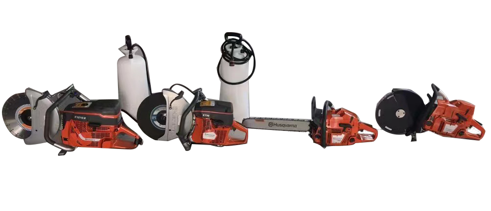 全功能切割鋸工具組主機由功率5.8KW的 PJR-K 1270R無齒鋸A兩臺、功率3.7KW的PJR-K770無齒鋸B兩臺、功率3.6KW的PJR-365X機動鏈鋸兩臺、功率4.1KW的PJR-S/ 115J機動雙輪異向切割鋸兩臺、以及鋸片,鏈條、冷卻水壺、火花塞、加油配比壺及其它附件組成。 |