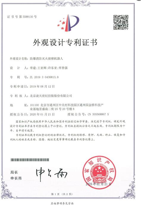 | 獎項類 | 2019獲得第一屆安全科技進步獎 | 防爆消防滅火偵察機器人 |