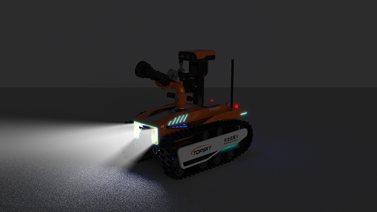 機(jī)器人采用無線遙控設(shè)計,遙控器與監(jiān)視器一體/分離,可實時的顯示電池、內(nèi)部的各種信息,機(jī)器人狀態(tài)、現(xiàn)場溫濕度、有毒有害氣體濃度報警信息等控制機(jī)器人前進(jìn)、后退、轉(zhuǎn)向等運(yùn)動。具備遠(yuǎn)程偵察能力,機(jī)身搭建升降云臺、高清攝像頭、熱成像攝像頭、氣體傳感器三類環(huán)境感知設(shè)備和云臺控制設(shè)備,也可聯(lián)動聲光報警模塊提醒消防人員或群眾,有效避免危險。在通過遠(yuǎn)程偵察手段有效獲取現(xiàn)場火源信息后,機(jī)器人配備的大功率電機(jī)可以幫助消防人員將消防水袋拖拽至危險火源區(qū)域進(jìn)行滅火,并能搭載各類國內(nèi)、外的多種消防水泡,并能夠遠(yuǎn)程控制發(fā)射水或泡沫。基于所配備的拾音模塊和揚(yáng)聲器模塊,拾取現(xiàn)場環(huán)境聲音,即使消防官兵未靠近消防現(xiàn)場也能夠聽到搜救現(xiàn)場的群眾呼救聲,并通過揚(yáng)聲器模塊與群眾進(jìn)行現(xiàn)場對話。