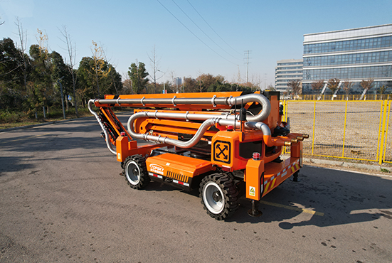 具有液壓調(diào)平支腿,臂架作業(yè)時保證整機水平,防止發(fā)生傾翻,以及支腿安全報警,車體傾斜報警,舉升避障、舉升限制、上下互鎖、風(fēng)速報警等安全保護功能,進一步提升機器人舉高噴射作業(yè)安全性。