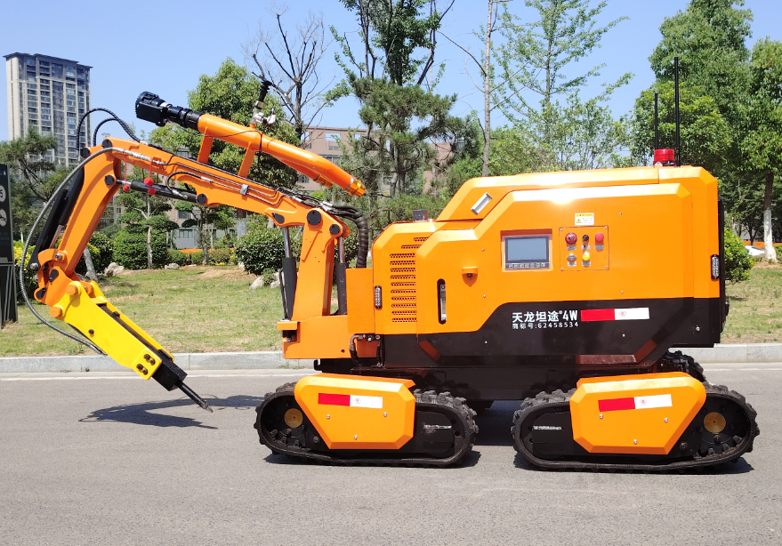 可替代人在有毒(污染)、有倒塌、強輻射等特殊危險的救援場所,也可以遙控機器人進行建筑拆除、混凝土鉆切、隧道開挖、搶險救援、冶金爐窯的打渣和內襯拆除、回轉窯的維修和核設施退役方面,避免人員傷亡