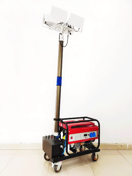 3.可直接使用發電機組供電,也可接通220V市電長時間照明;采用發電機組供電次注滿燃油連續工作時間可達8小時以上。
