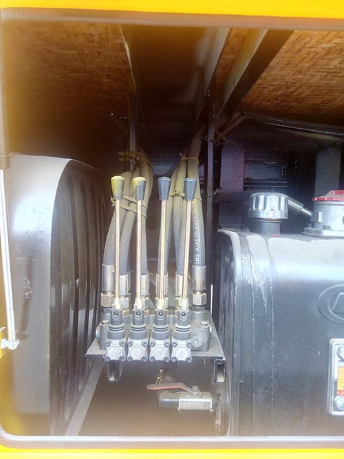 輛安裝四只液壓支撐腿,可在駐車狀態均分車輛靜壓,保護車輪及彈簧鋼板。選用進口優質意大利多路閥組,液壓支撐缸采用進口密封件,單缸靜載荷5噸,加裝雙向液壓鎖。