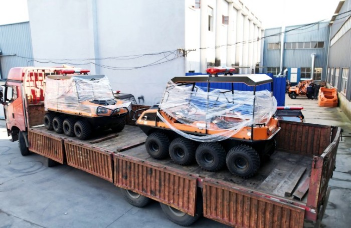 針對水災(zāi)頻發(fā)的地區(qū),水域救援任務(wù)必不可少。但往往洪澇災(zāi)害、城市內(nèi)澇往往伴隨著惡劣的天氣和崎嶇的地形,沖鋒舟需要多次搭載不同交通工具并數(shù)次轉(zhuǎn)移,水陸兩棲全地形車可以輕松通過水淹、泥濘、沼澤等環(huán)境,無需人力搬運(yùn),實(shí)現(xiàn)陸地駕駛和水中行走自由切換,以最快的時效抵達(dá)現(xiàn)場實(shí)施救援。