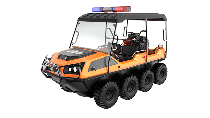 針對水災頻發的地區,水域救援任務必不可少。但往往洪澇災害、城市內澇往往伴隨著惡劣的天氣和崎嶇的地形,沖鋒舟需要多次搭載不同交通工具并數次轉移,森林消防水陸兩棲全地形車可以輕松通過水淹、泥濘、沼澤等環境,無需人力搬運,實現陸地駕駛和水中行走自由切換,以最快的時效抵達現場實施救援。