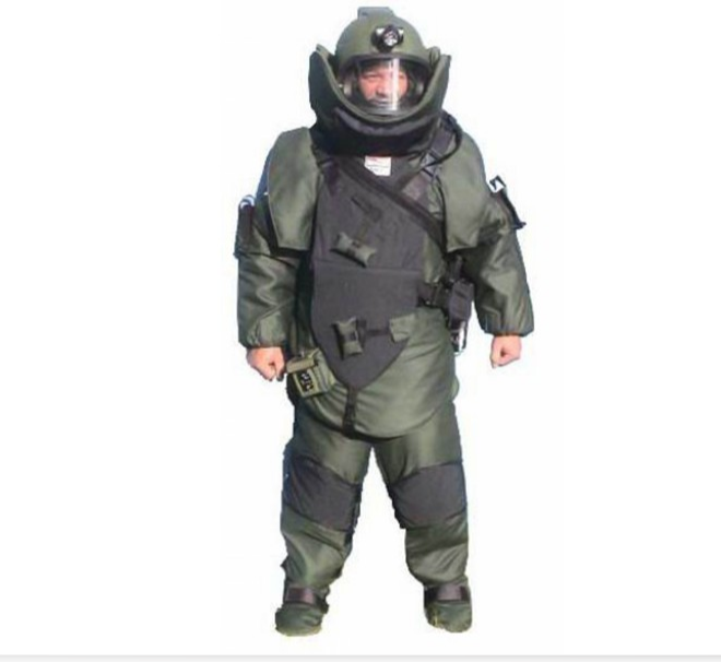 重量:排爆服30kg 帶防爆板,17kg不帶防爆板,頭盔帶面罩:4.8kg.