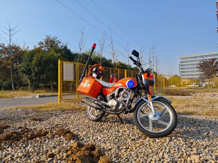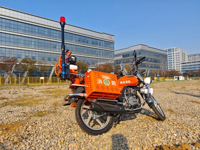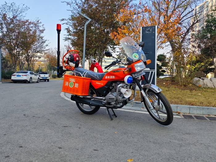 消防巡邏摩托車是在宗申摩托車的基礎上改裝而成,能夠廣泛的應用于森林、城市公路、工廠、學校、社區、醫院等場所,巡邏并可攜帶滅火裝備能迅速的將火災撲滅在初期。