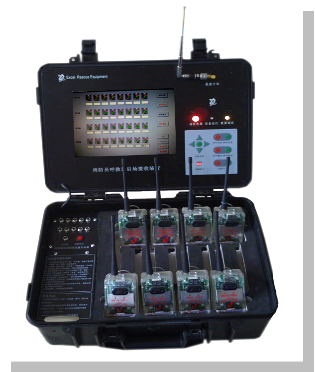 ◆ 產品性能:該產品為一體化設計結構,具備同事監視4組32個人員現場的狀態,實時顯示人員的動態運動方式、靜止方式,預報警方式,強報警方式、手動強報警方式,溫度報警和與空呼氣配套計時報警方式。